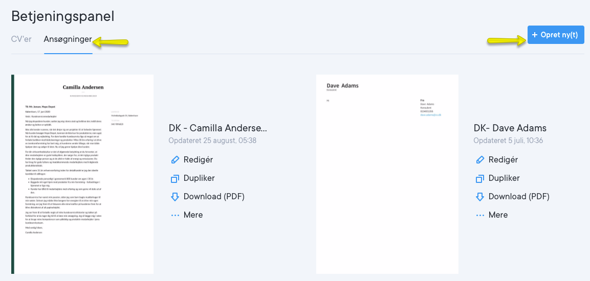Hvordan opretter jeg et følgebrev på cv.dk
