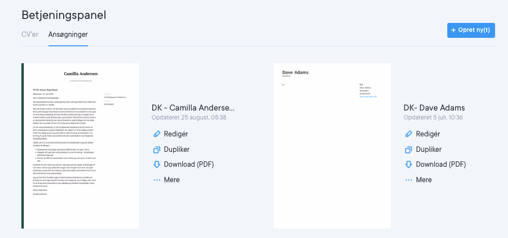 Du kan bruge cv.dk til hurtigt og nemt at skrive en ansøgning ved hjælp af vores værktøjer til cv-skrivning. Du kan nemt dele ansøgningen med alle ved hjælp af et onlinelink.