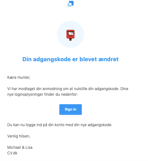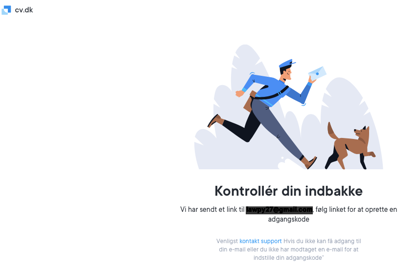 Hvis din e-mailadresse virker, men du ikke modtager den magiske link via e-mail, skal du tjekke din spammappe eller prøve at søge i din indbakke til cv.dk.