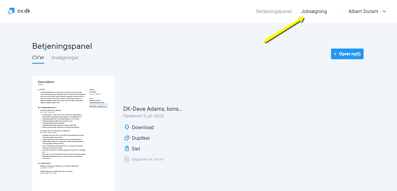 Gem job i din browser i øverste højre